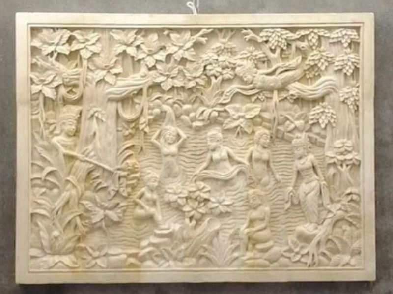 Relief batu alam motif Rajaphala khas Bali terbuat dari batu alam paras Jogja berwarna putih yang memiliki tekstur halus yang cocok untuk hiasan dinding rumah dan villa. Hadir dengan motif khas Bali yang unik, menambah nilai estetika tidak hanya pada eksterior, melainkan juga interior bangunan rumah, mansion, villa atau restoran.