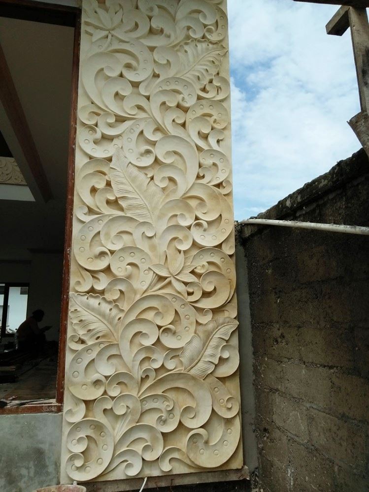 Relief Dinding Rumah Klasik. Terbuat dari bahan batu paras Jogja yang berwarna putih.