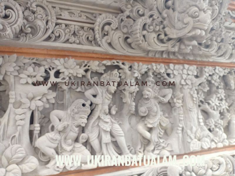 Ukiran Relief Ramayana. Terbuat dari bahan batu paras Jogja yang berwarna putih.
