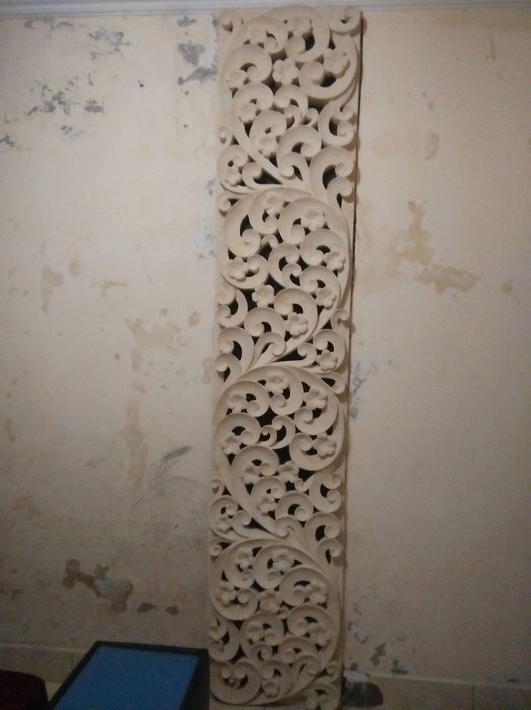 Ukiran Relief Untuk Rumah. Terbuat dari bahan batu paras Jogja yang berwarna putih.